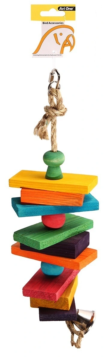 This is a Wooden Blocks with Beads Parrot Toy by Avi One. This bird toy is 11cm wide x 36cm long. This toy can be used with budgies, small parrots and parrots.